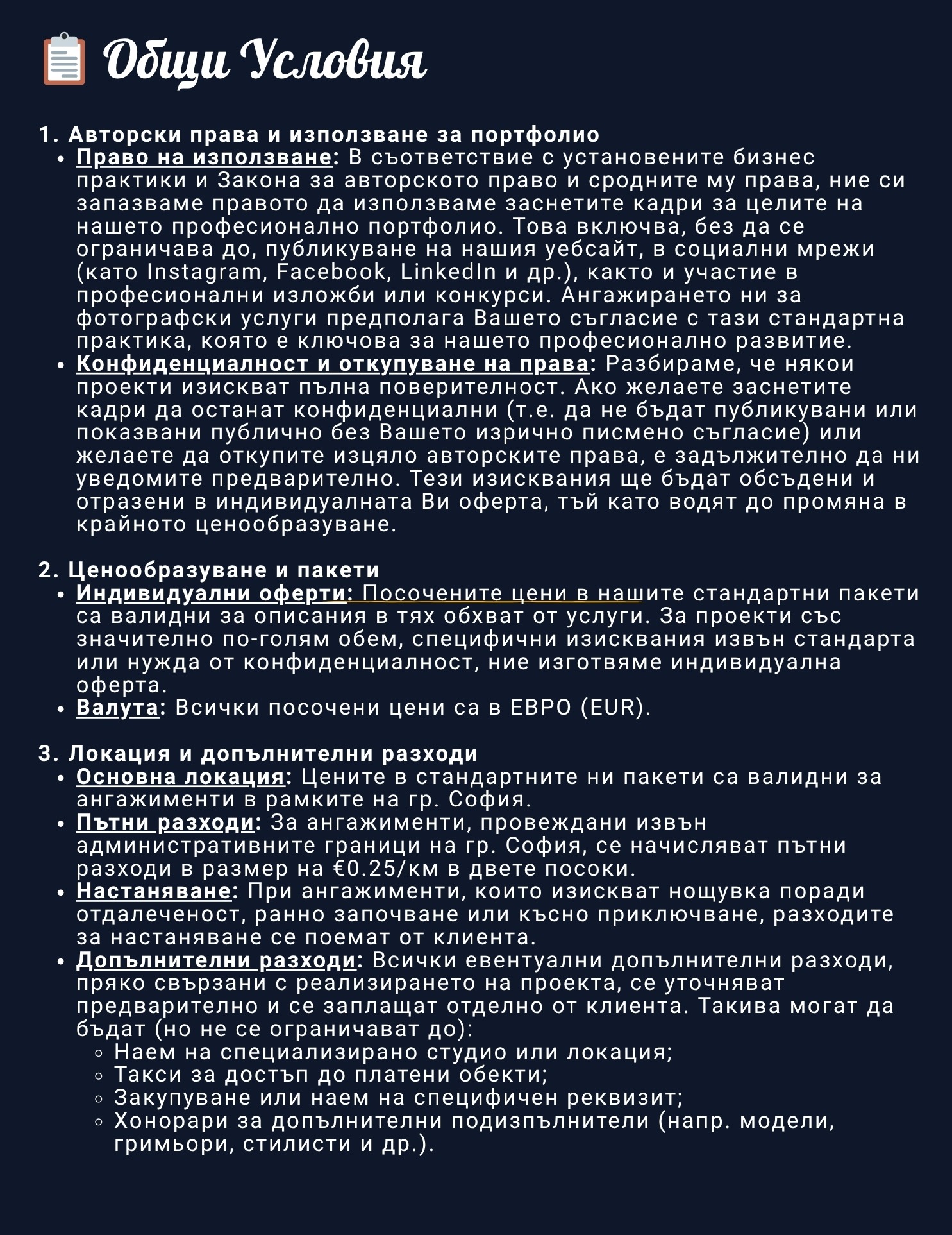✓ Снимки във вашия офис или в студио